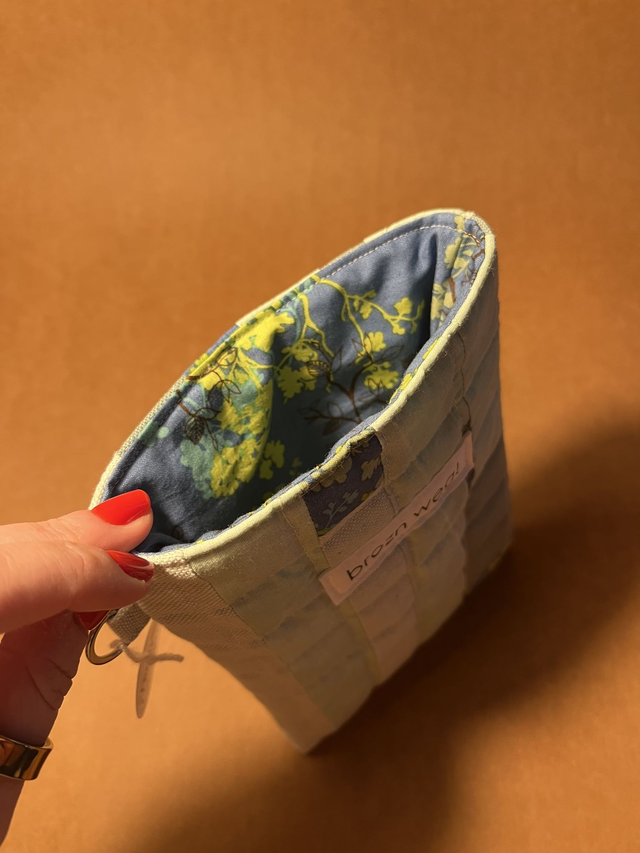 Patchwork Buchtasche oder e-reader Tasche aus Stoffresten in mint, blau, grün