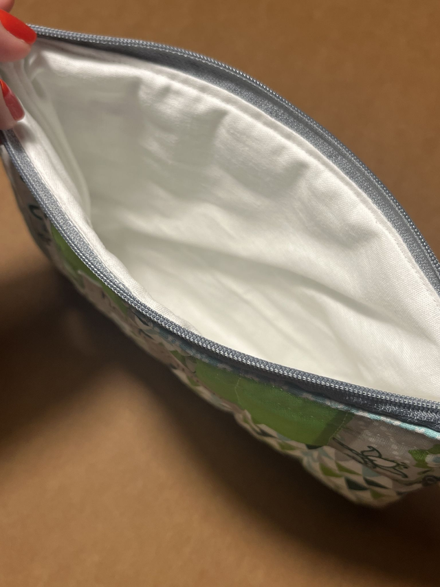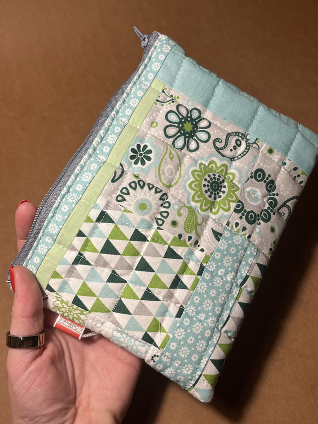 Patchwork Tascherl aus Stoffresten in grün, weiß, grau