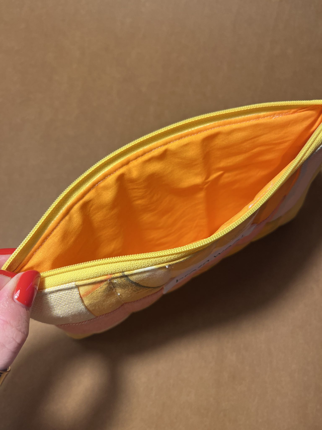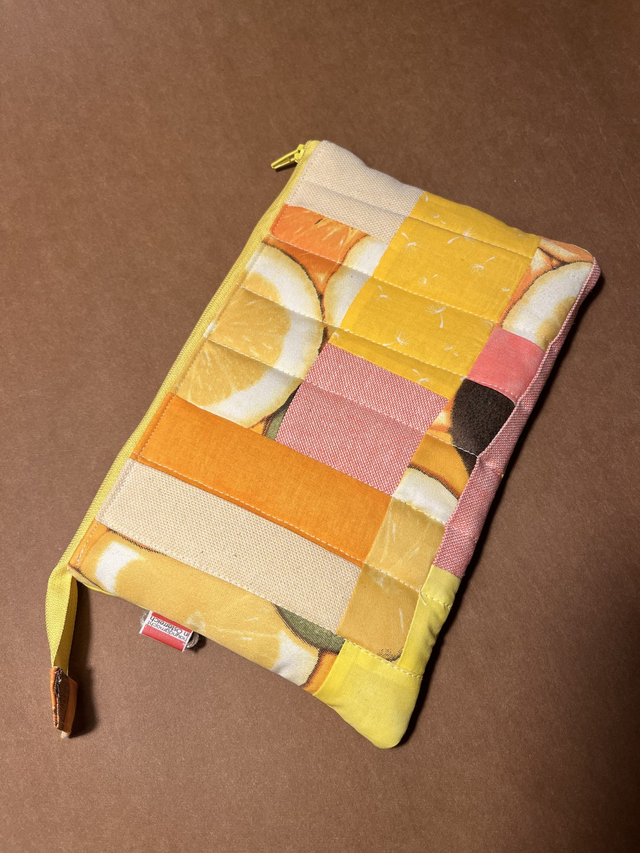 Patchwork Tascherl aus Stoffresten in gelb, orange, lachs